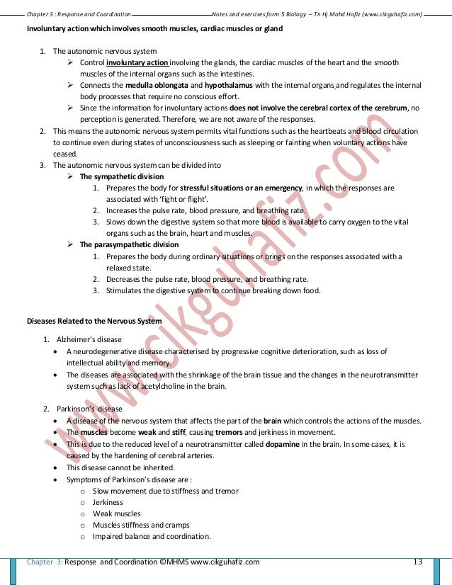 Form 5 Biology Notes Chapter 3 Coordination
