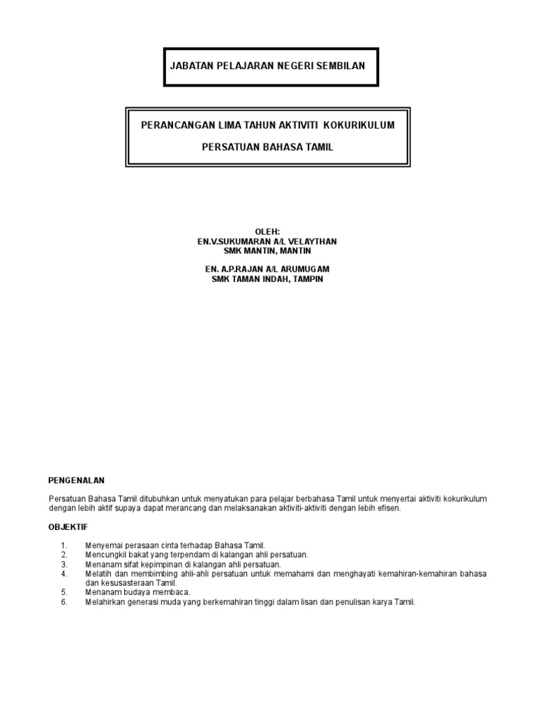 Kertas Soalan Peperiksaan Akhir Tahun Bahasa Tamil Tingkatan 1 Tcer My