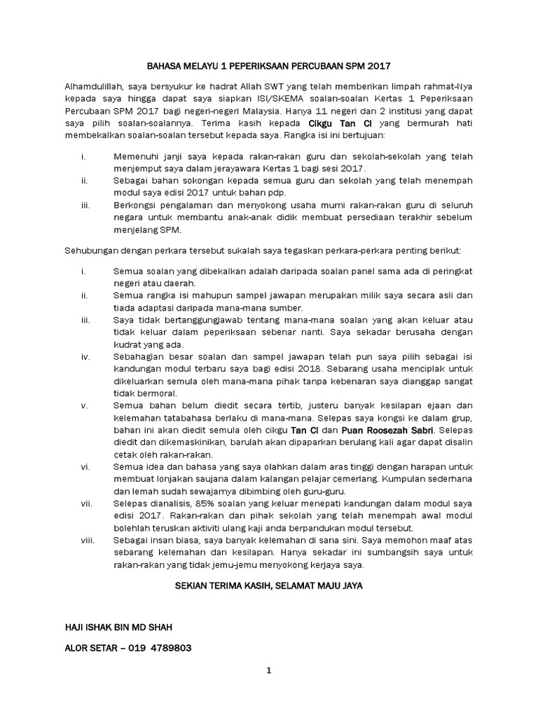 Karangan Bm Percubaan 2017 Cikgu Ishak